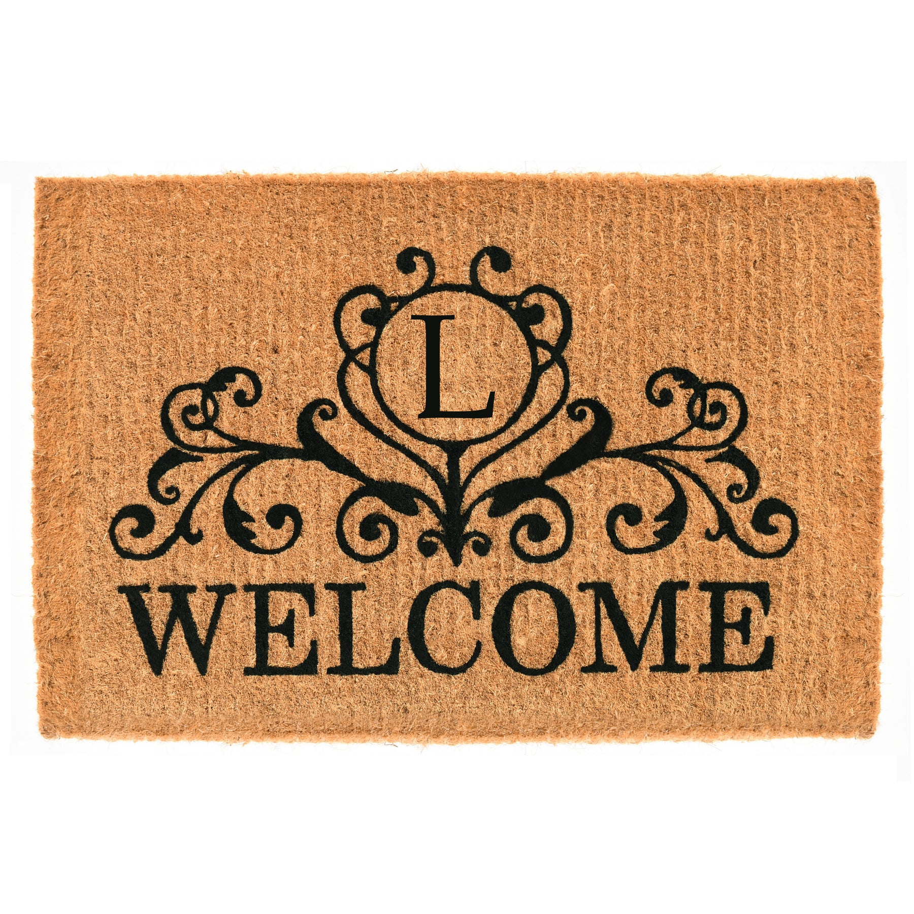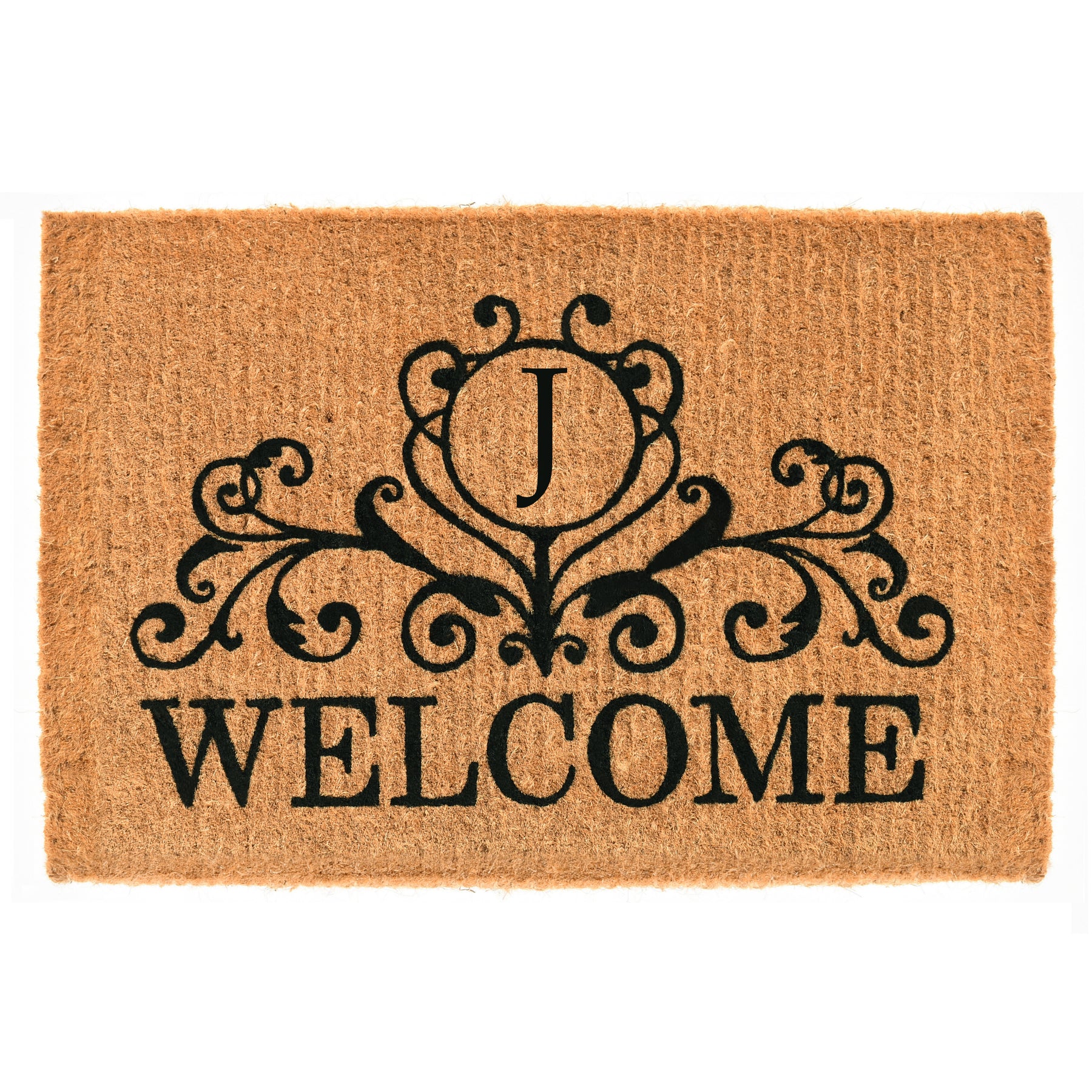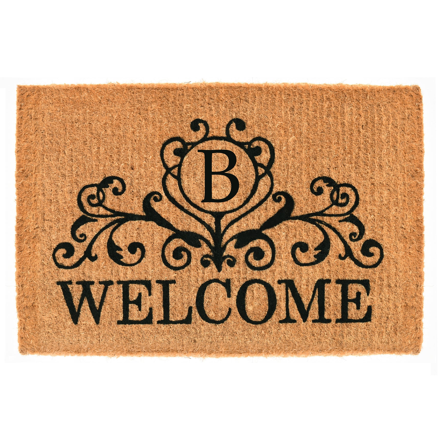Welcome your guests with this gorgeous monogrammed doormat that is expertly made by hand. Made of 100% coir, this durable, heavy-duty fiber is earth friendly, naturally abrasive to scrape shoes clean, retains its shape no matter the foot traffic and absorbs moisture. Height is 1½" -2", vacuum, sweep or lightly hose clean.