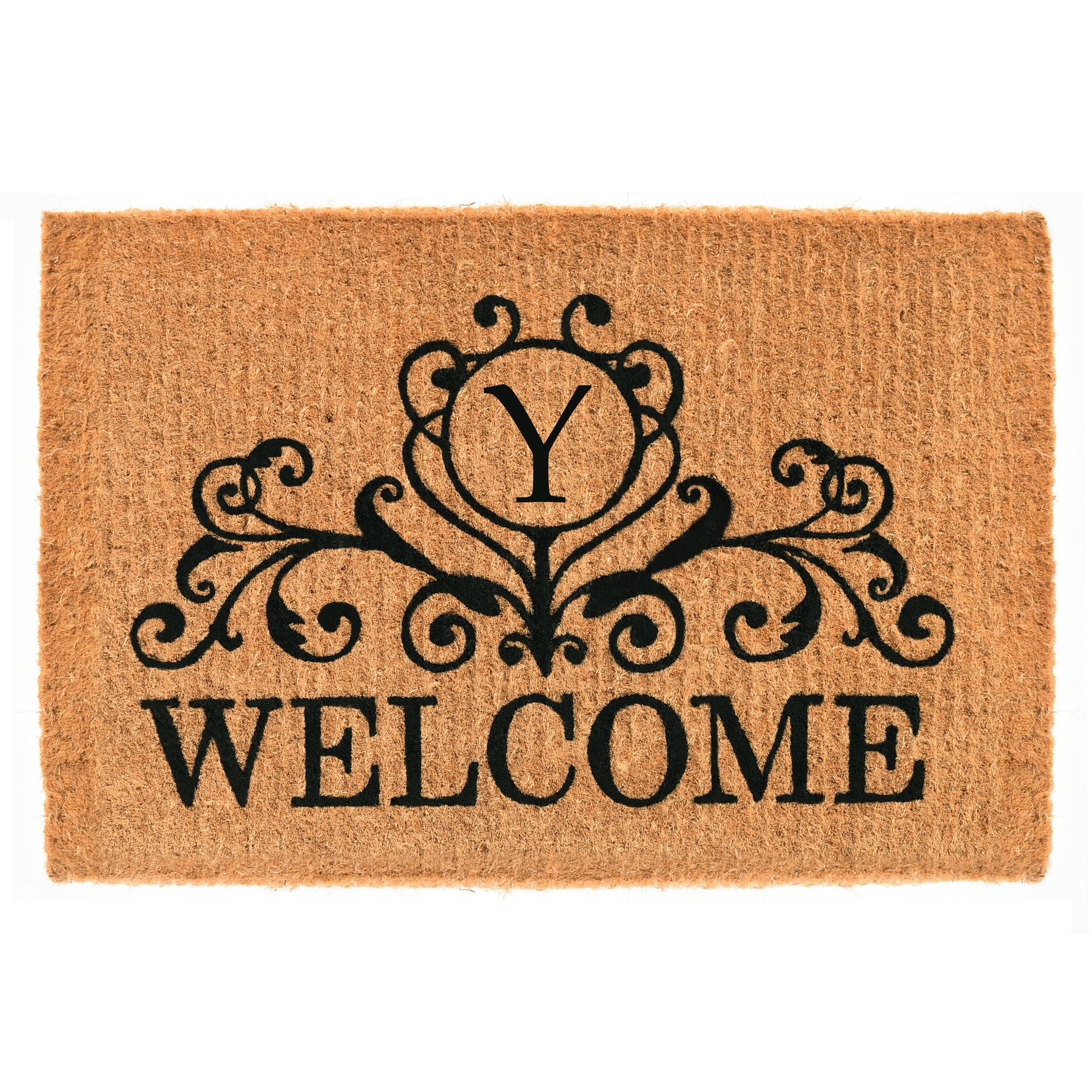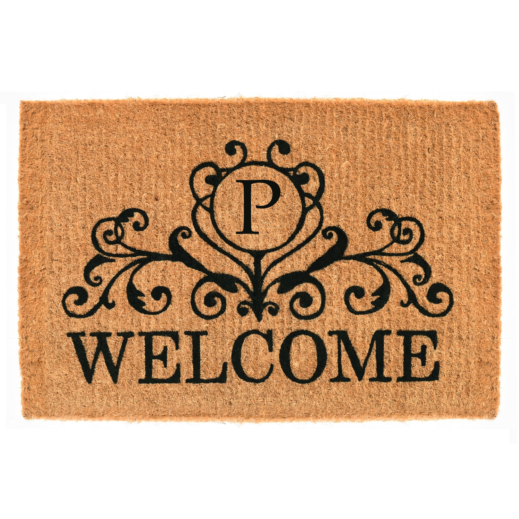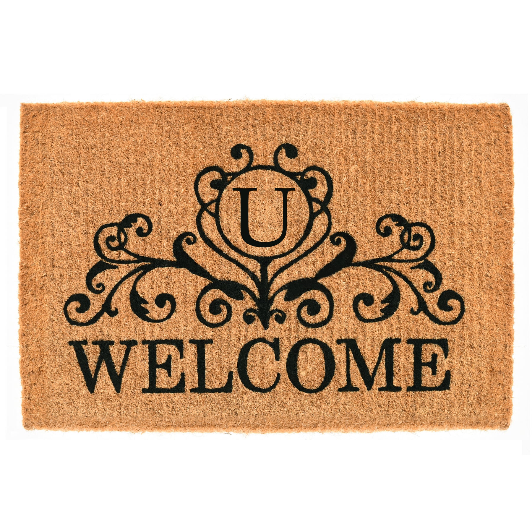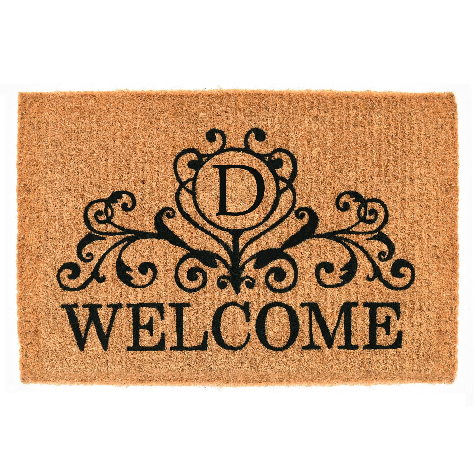 Welcome your guests with this gorgeous monogrammed doormat that is expertly made by hand. Made of 100% coir, this durable, heavy-duty fiber is earth friendly, naturally abrasive to scrape shoes clean, retains its shape no matter the foot traffic and absorbs moisture. Height is 1½" -2", vacuum, sweep or lightly hose clean.