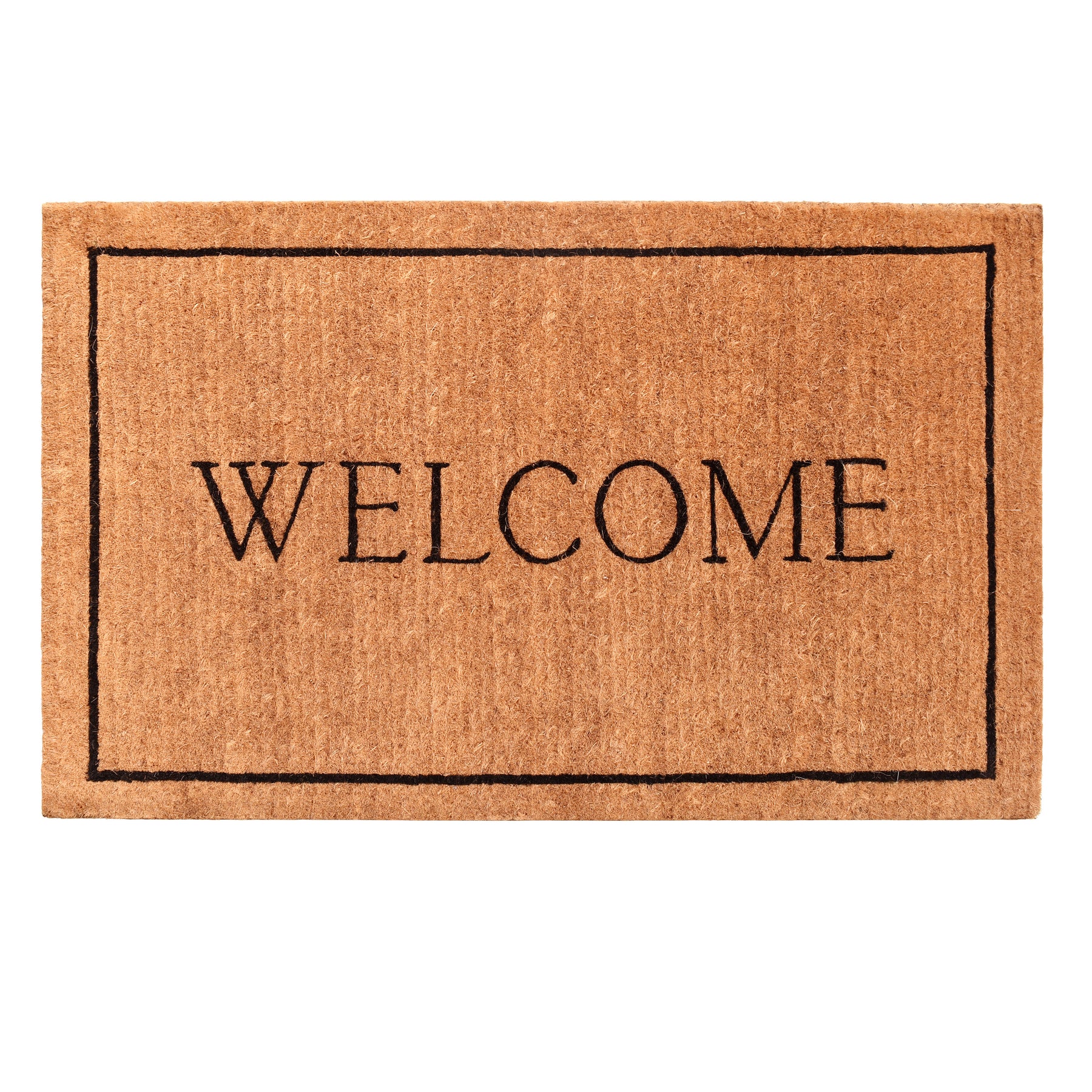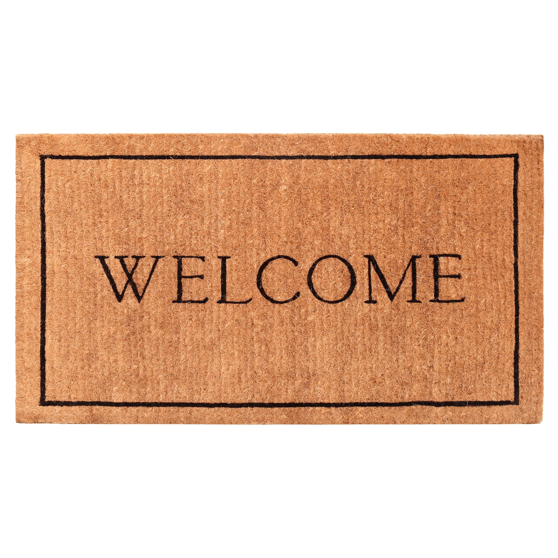 Made of natural coir, a dense fiber that is naturally mold and mildew resistant. Coir is a renewable resource that is durable and weather tolerant. Expertly made by hand of 100% coir, this durable, heavy-duty doormat is earth friendly, naturally abrasive to scrape shoes clean, retains its shape and absorbs moisture. For best results keep in a sheltered area such as a covered porch, keeping extreme moisture and sunlight to a minimum. Average height is 1½” – 2” thick. Vacuum, sweep or lightly hose clean.