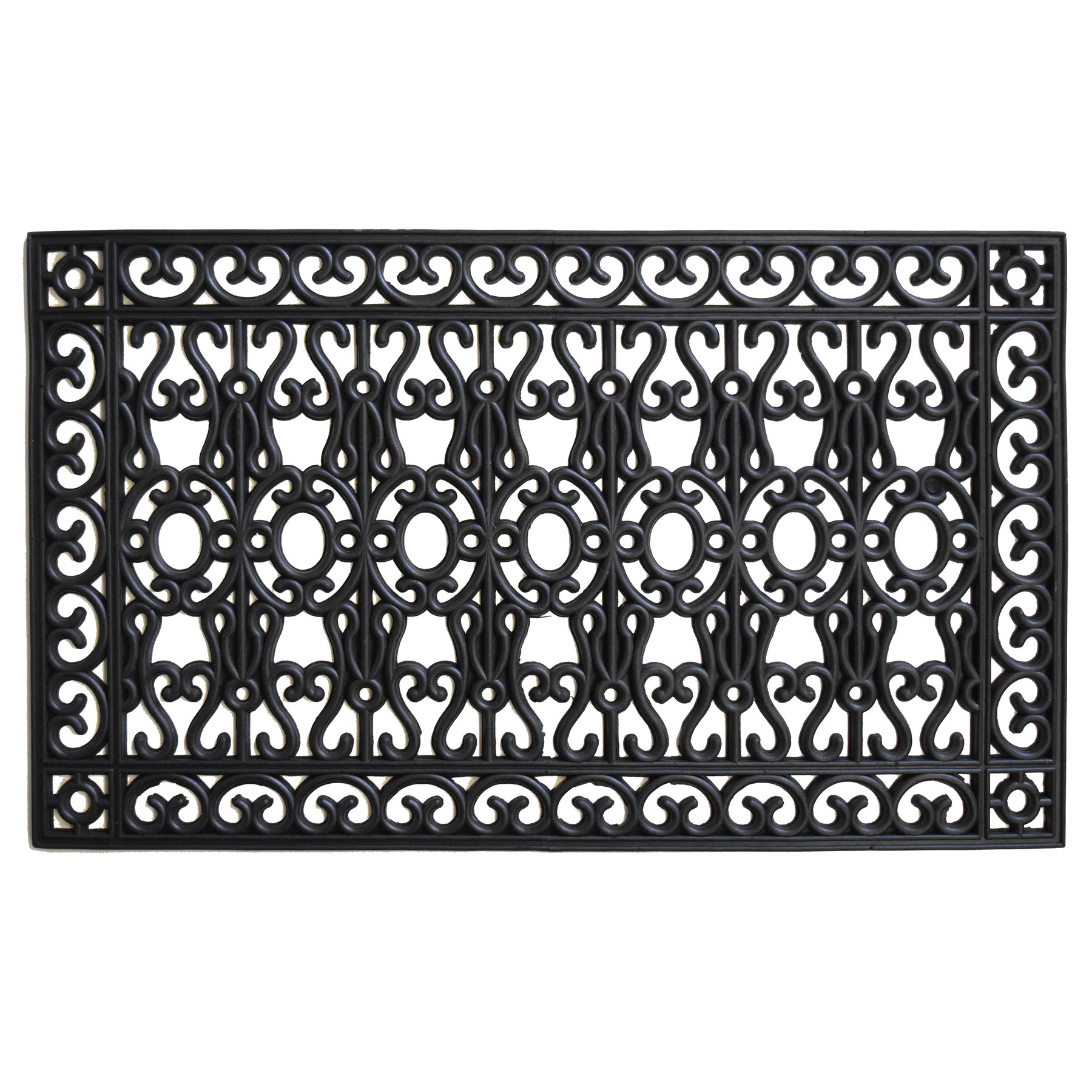 Over-sized to provide more coverage, this beautiful doormat is made of 100% rubber and is impervious to the elements of weather. Detailed scroll that emulates wrought iron, this heavy-duty mat makes a gorgeous addition to any porch or patio area. Hose clean.