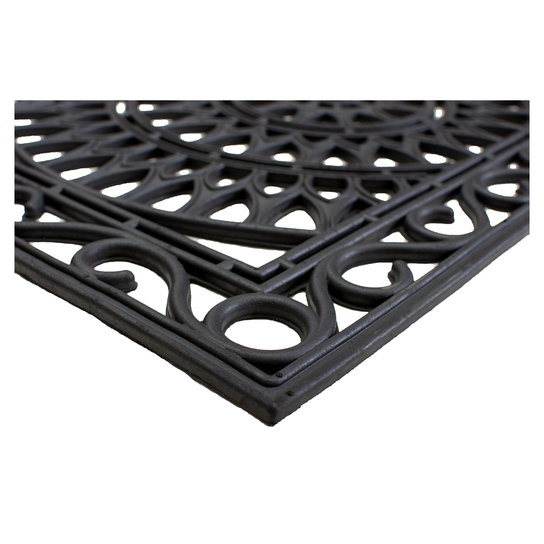 Welcome your guests with this beautiful doormat that is made of 100% rubber and impervious to the elements of weather. Detailed scroll that emulates wrought iron, this heavy-duty mat makes a gorgeous addition to any porch or patio area. Extremely durable, won’t mold or mildew. Hose clean.