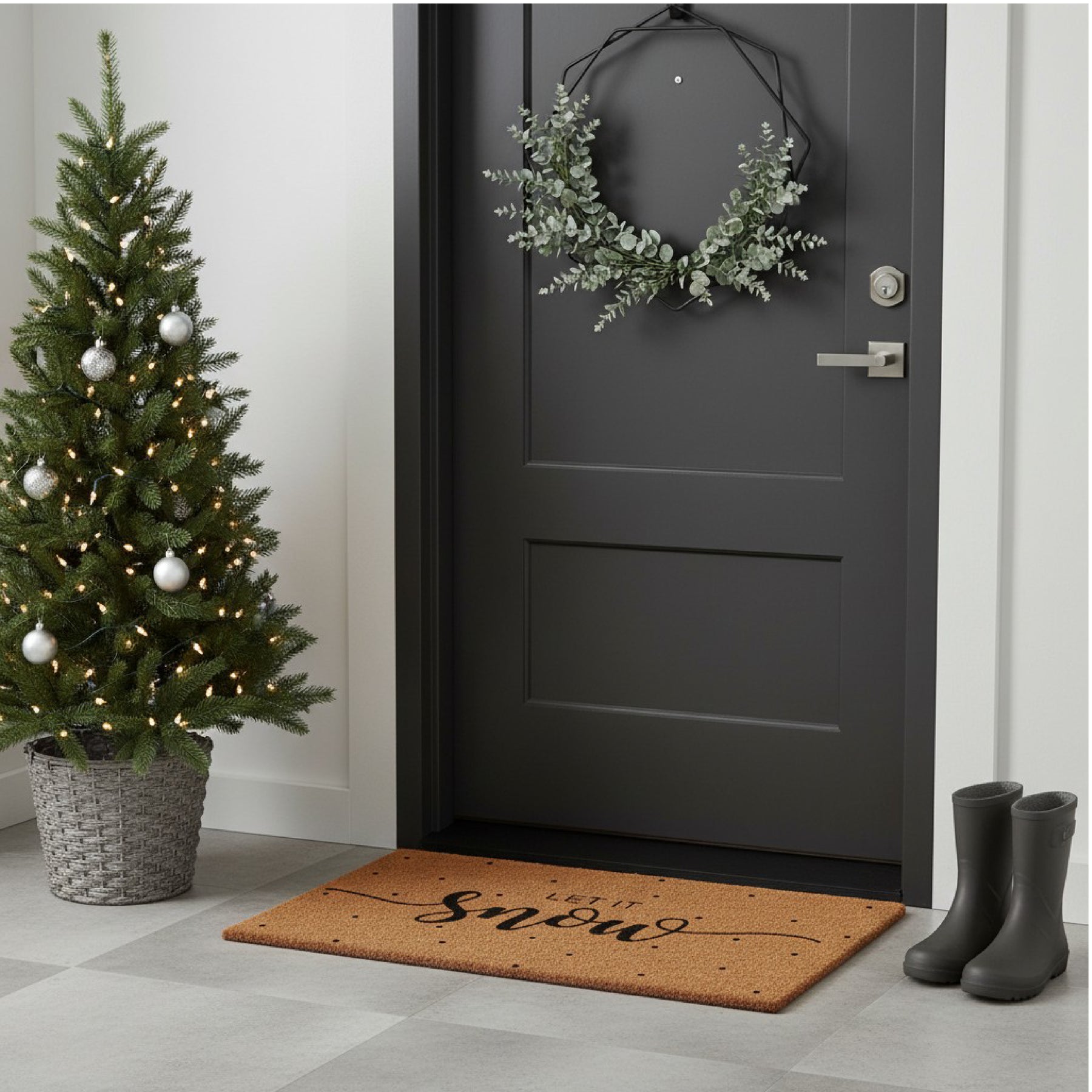 Bring a touch of cozy winter style to your doorstep with this charming “Let It Snow” doormat. Featuring elegant black script on a natural coir background with subtle dotted accents, this mat perfectly blends simplicity and seasonal cheer. Add a festive yet modern touch to your home this winter—perfect for greeting guests during the holiday season!