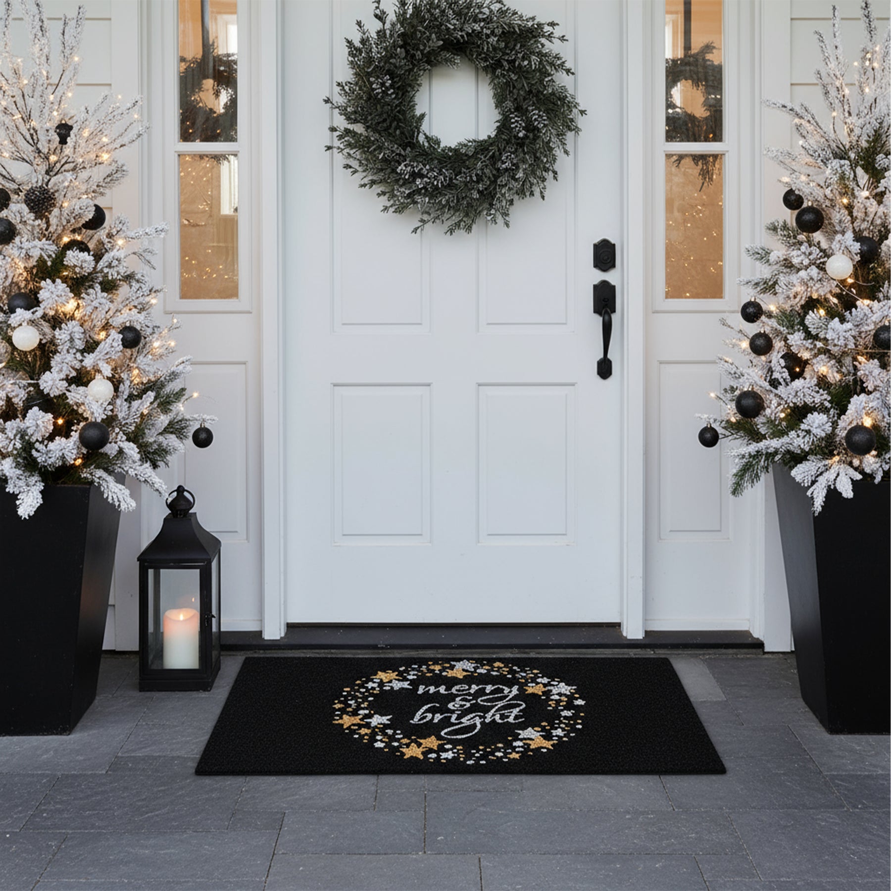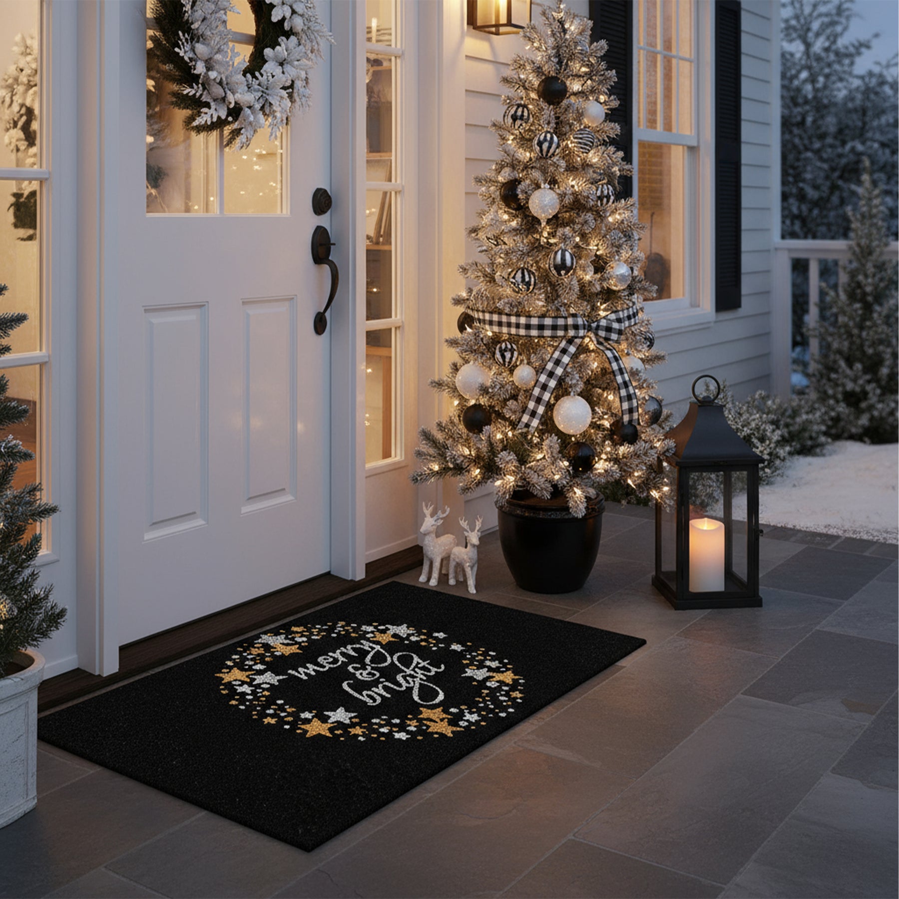 Brighten your doorstep with our radiant Star Holiday Greeting Doormat. Adorned with a cheerful message encircled by a charming star wreath, this delightful mat sets a festive tone for your home. Crafted with durable materials and festive flair, it welcomes guests with warmth and holiday cheer. Embrace the merry ambiance as you invite visitors into your home, where every step is met with the joy and magic of the season.