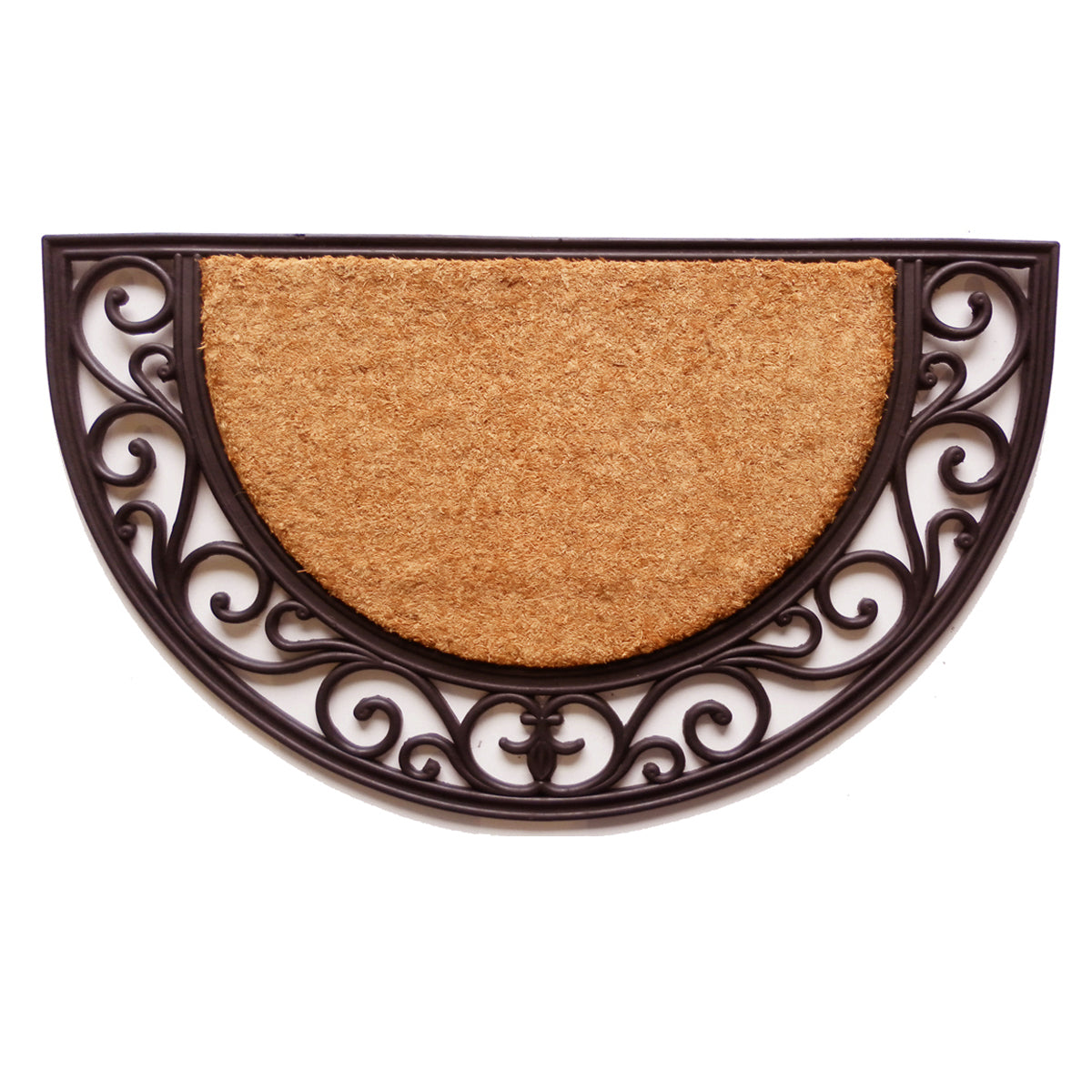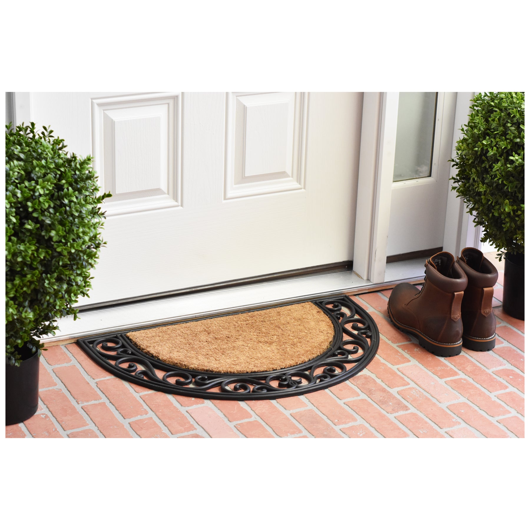 The beautiful combination of coir and rubber in this doormat make a stylish reception for your guests. While the heavy-duty rubber adds weight and elegance, the coir acts as a natural scraper on shoes to keep debris from entering your home. Sweep or hose clean.