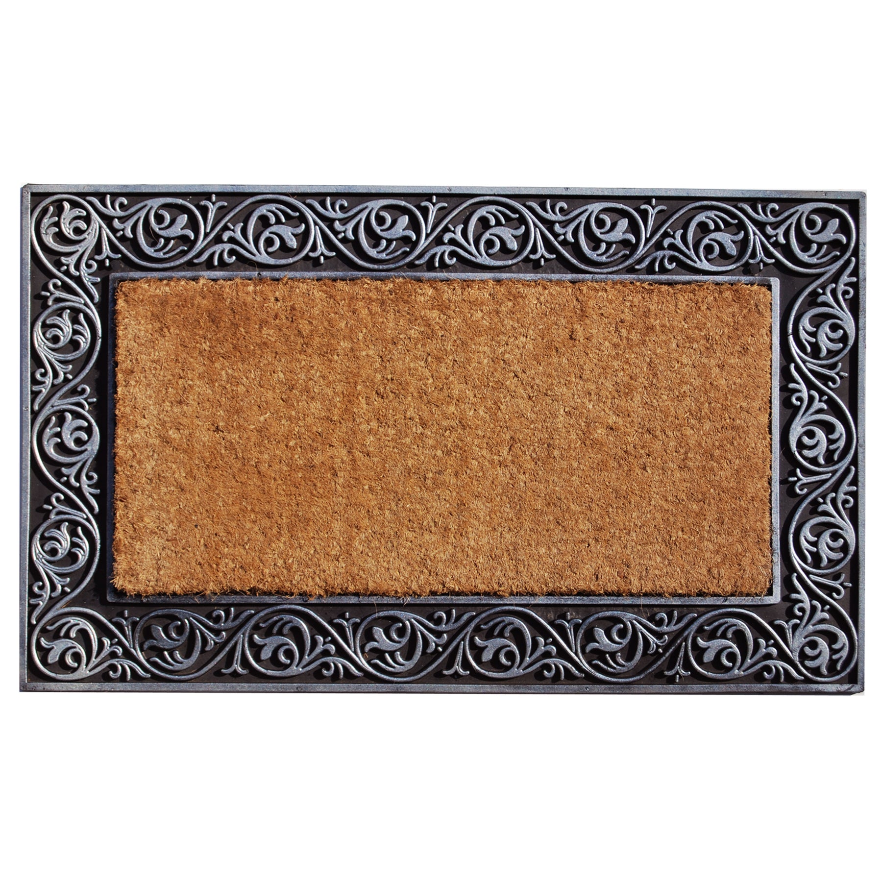 The beautiful combination of natural coir and silver rubber in this doormat make an elegant reception for your guests. Designed to complement today's door hardware, this mat is colorfast, weather tolerant and made to withstand heavy traffic. Sweep or hose clean.