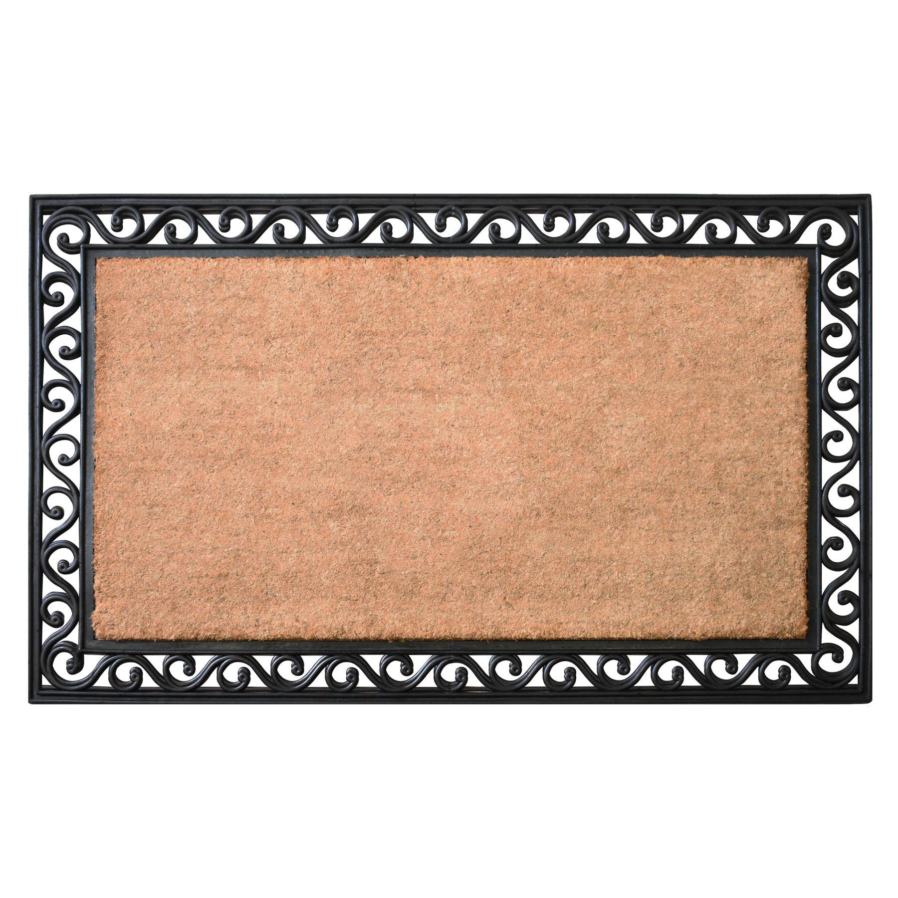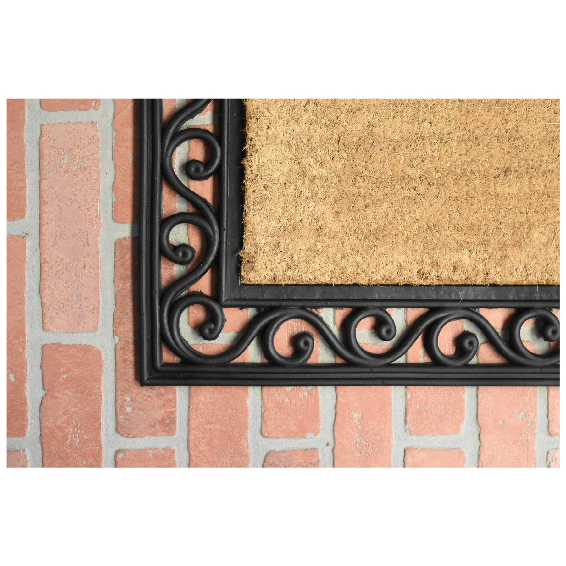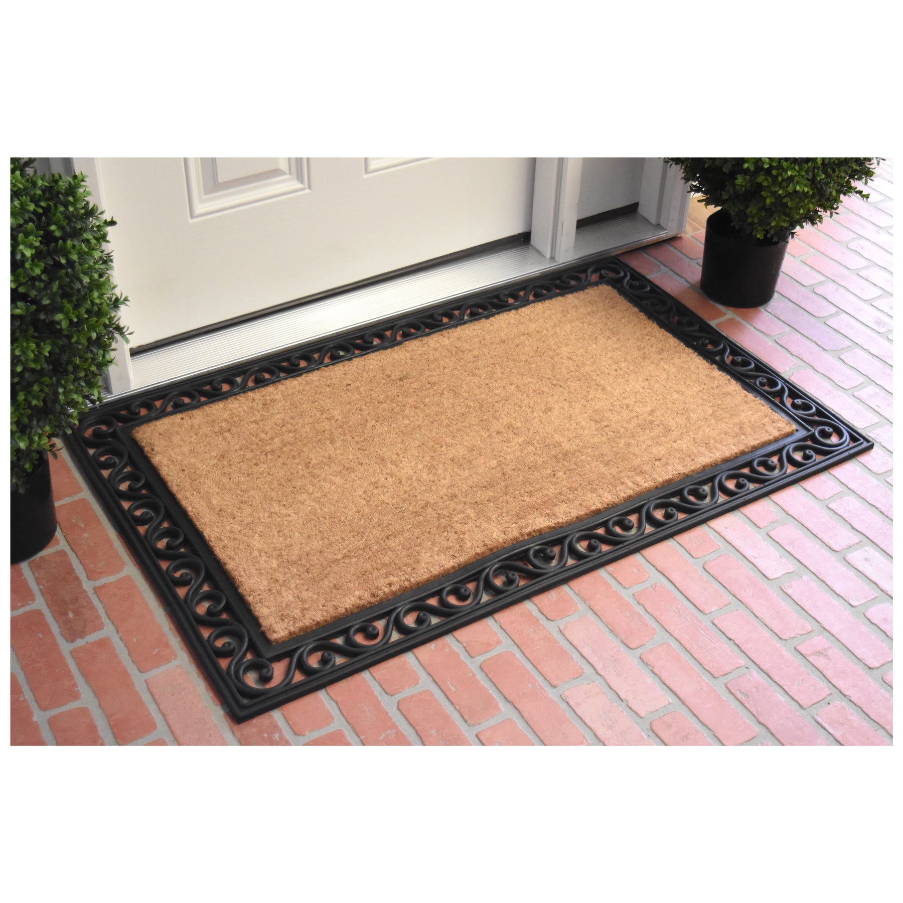The beautiful combination of coir and rubber in this doormat make a stylish reception for your guests. While the heavy-duty rubber adds weight and elegance, the coir acts as a natural scraper on shoes to keep debris from entering your home. Sweep or hose clean.