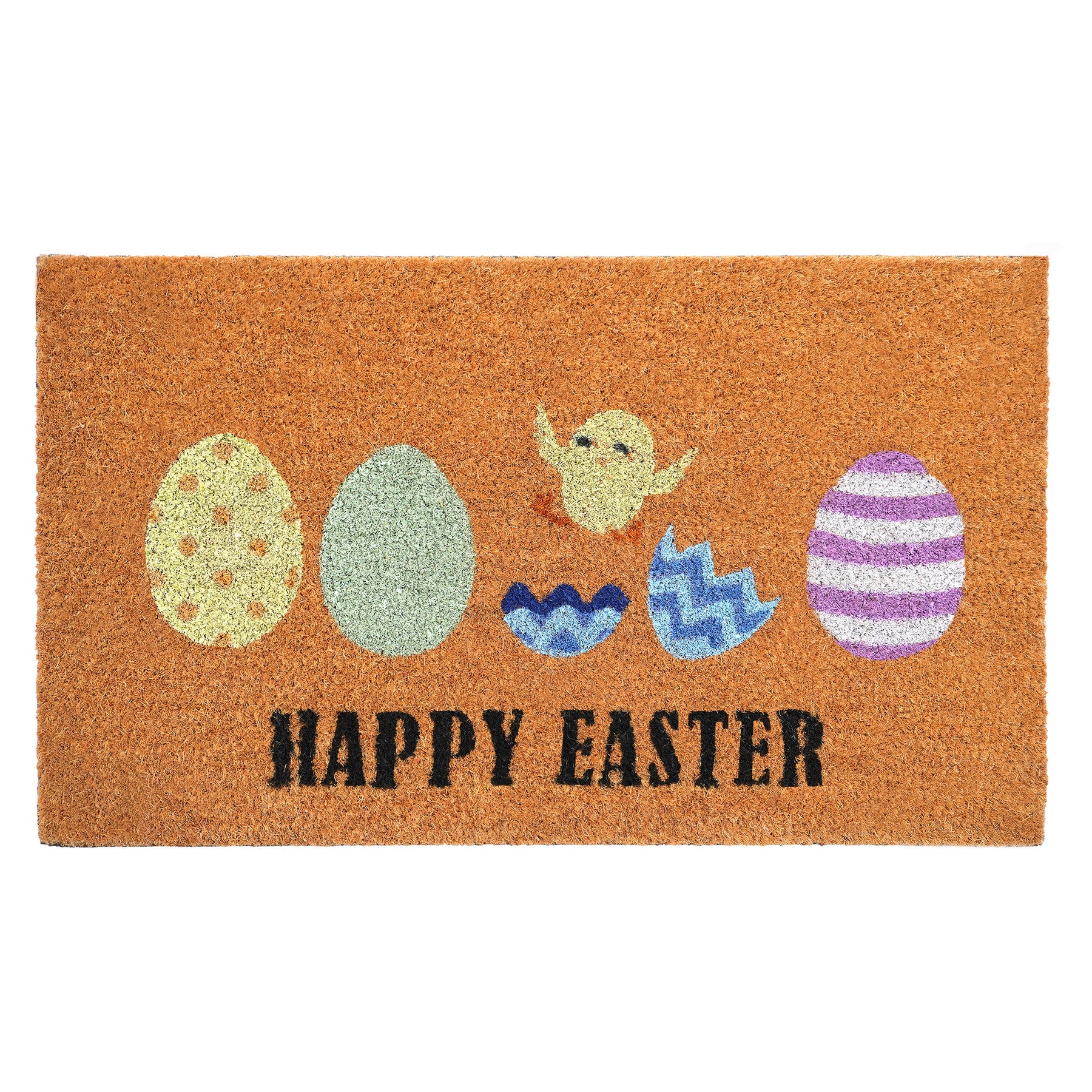 Celebrate the joy of Easter with our delightful Happy Easter Doormat, adorned with colorful Easter eggs and a playful chick popping out of one. Crafted with durable materials and cheerful design, this charming mat sets a festive tone for your doorstep. Embrace the spirit of the holiday as you invite guests into your home, where every step is met with the happiness and excitement of Easter.