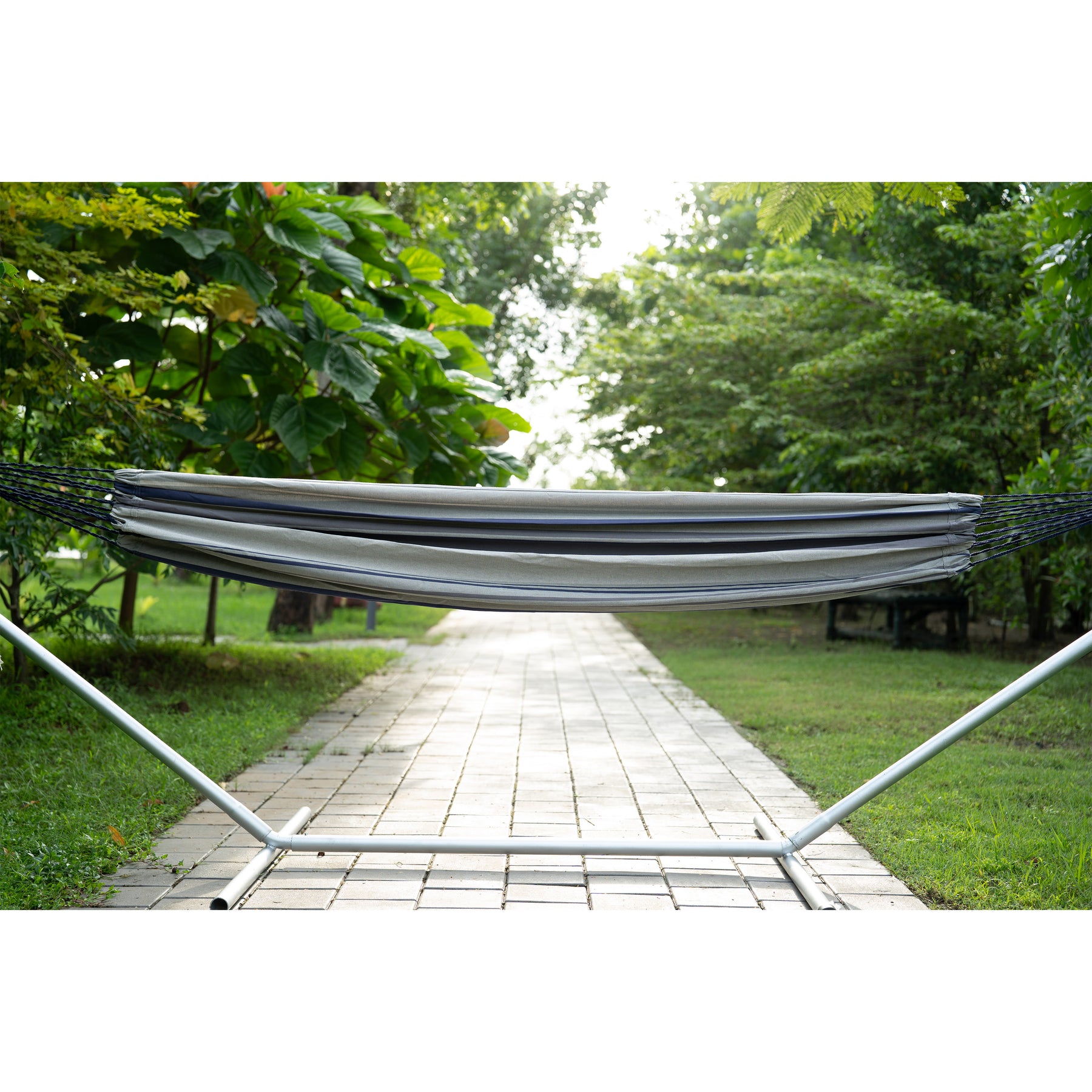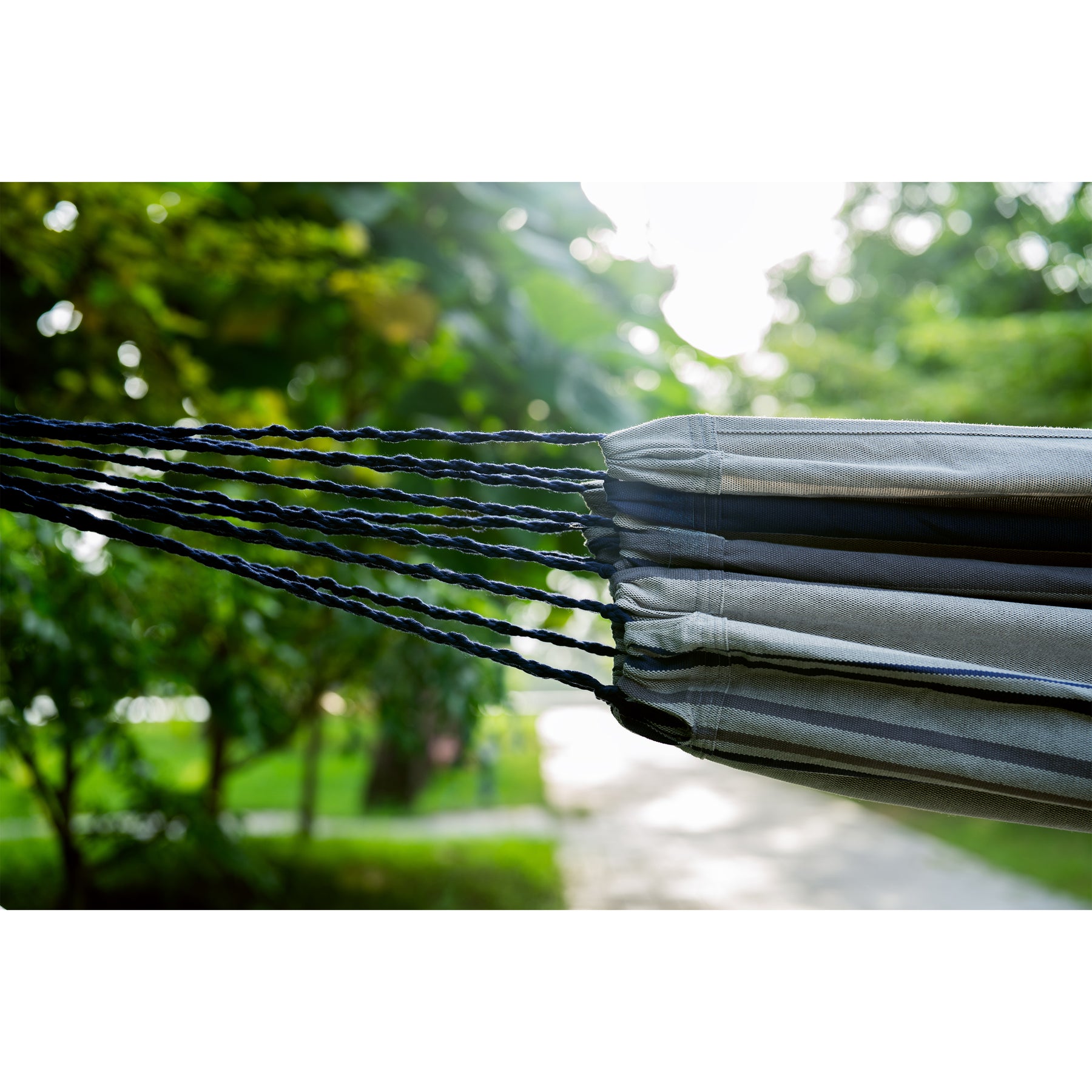 Calloway Mills Sunnydays hammock features vibrant patterns of bright stripes adding a pop of color to any space in your home creating a blissful retreat. You will feel like you are floating in the clouds when you are resting in this luxurious hammock. Handmade by master artisians, each hammock swing chair is one-of-a-kind piece. Made from 100% cotton canvas and rustic style spreader bar. Perfect for indoor and outdoor use.