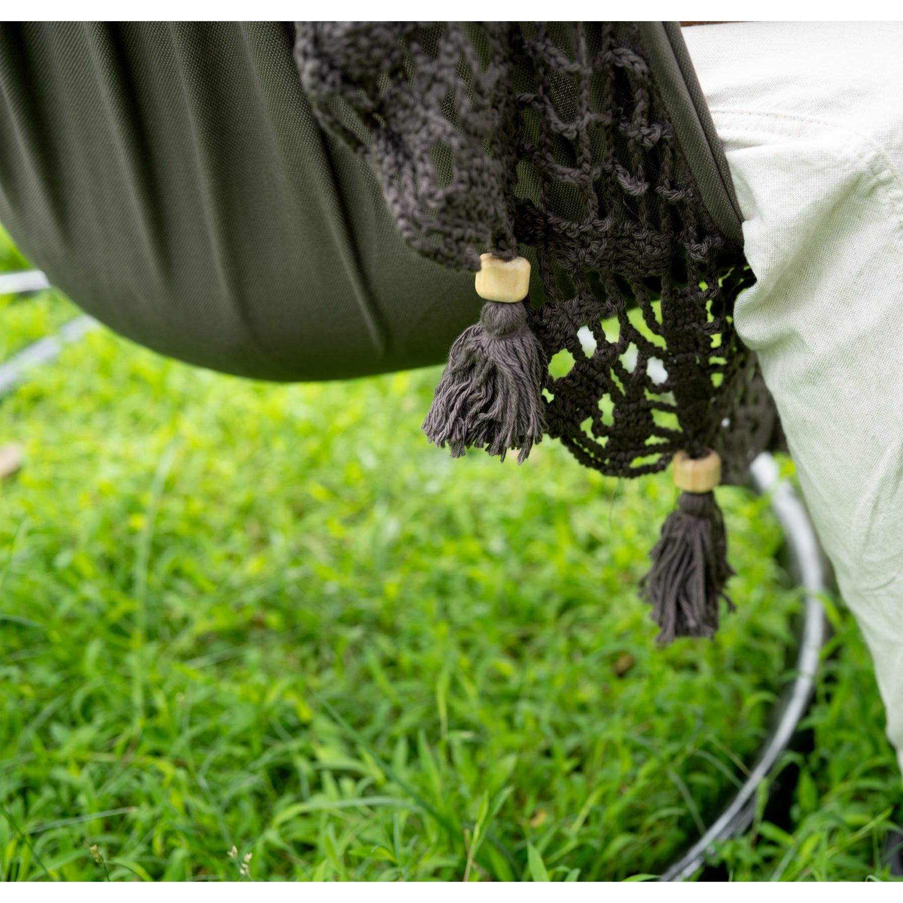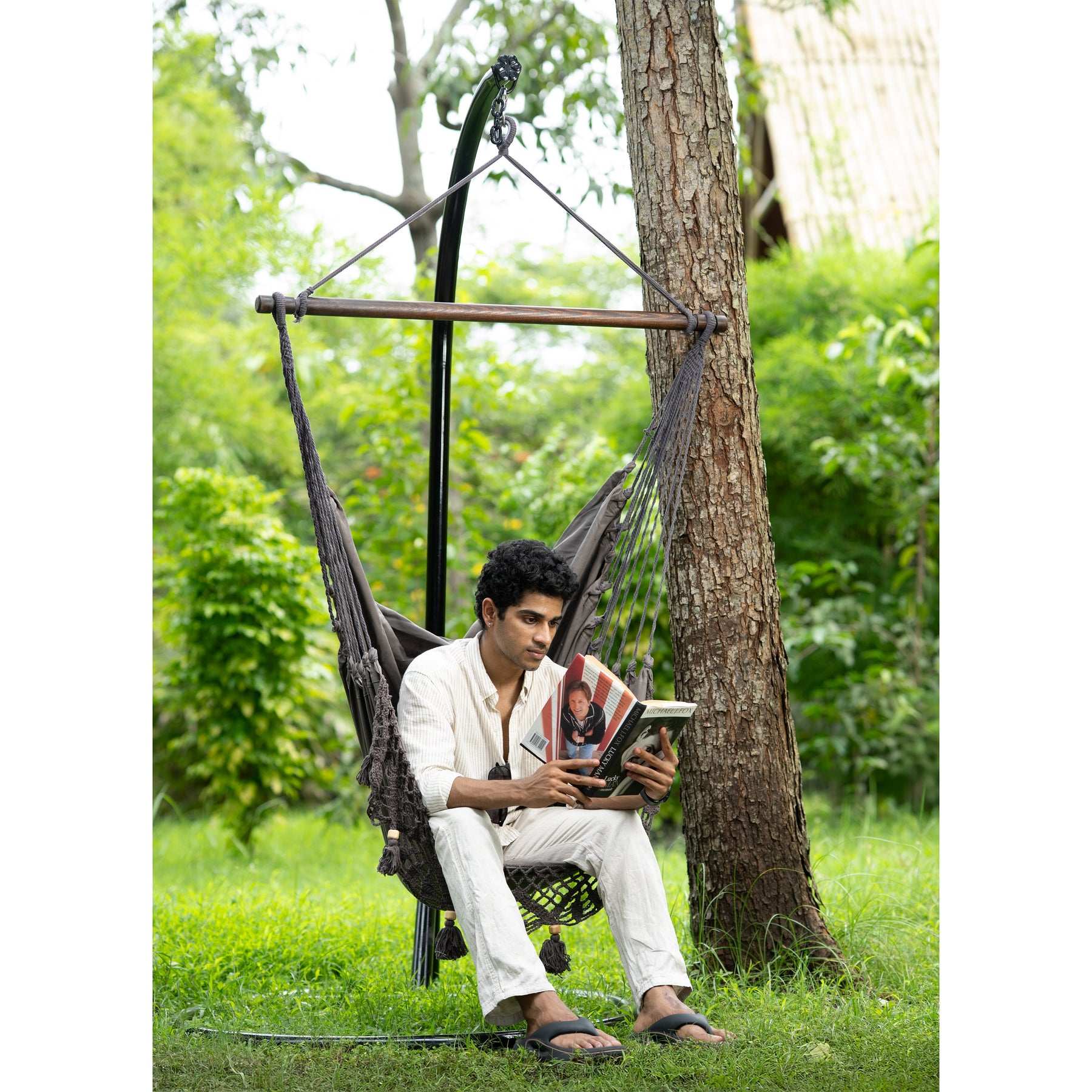 Calloway Mills Sunnydays hammock features vibrant patterns of bright stripes adding a pop of color to any space in your home creating a blissful retreat. You will feel like you are floating in the clouds when you are resting in this luxurious hammock. Handmade by master artisians, each hammock swing chair is one-of-a-kind piece. Made from 100% cotton canvas and rustic style spreader bar. Perfect for indoor and outdoor use.