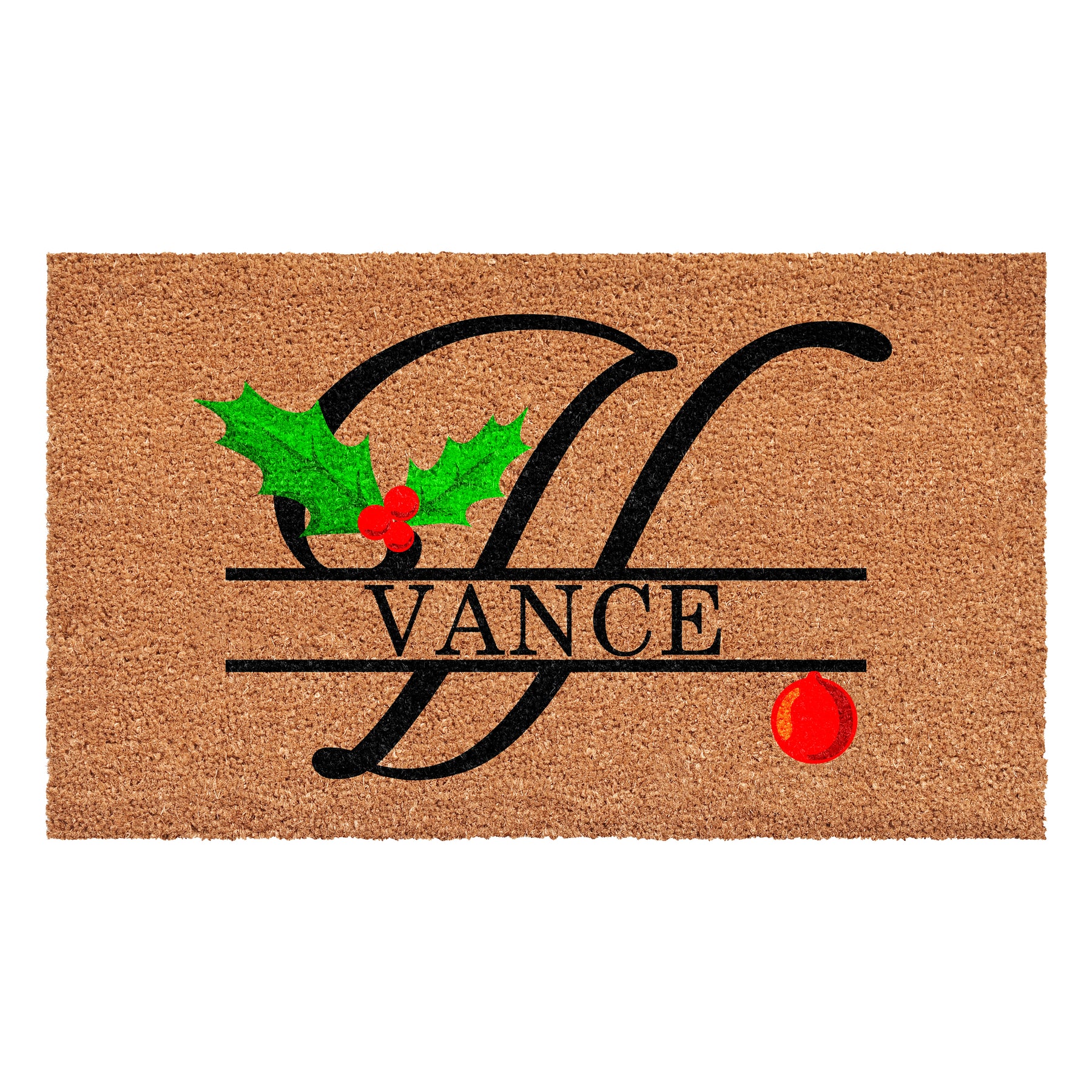 Brighten your home entry with this beautiful monogrammed doormat. Made of coir, a dense fiber that is durable and coarse, excellent for scraping shoes clean. Vinyl backed for increased durability and to help prevent movement and retain their shape. For best results keep in a sheltered area such as a covered porch. Vacuum, sweep or lightly hose clean.
