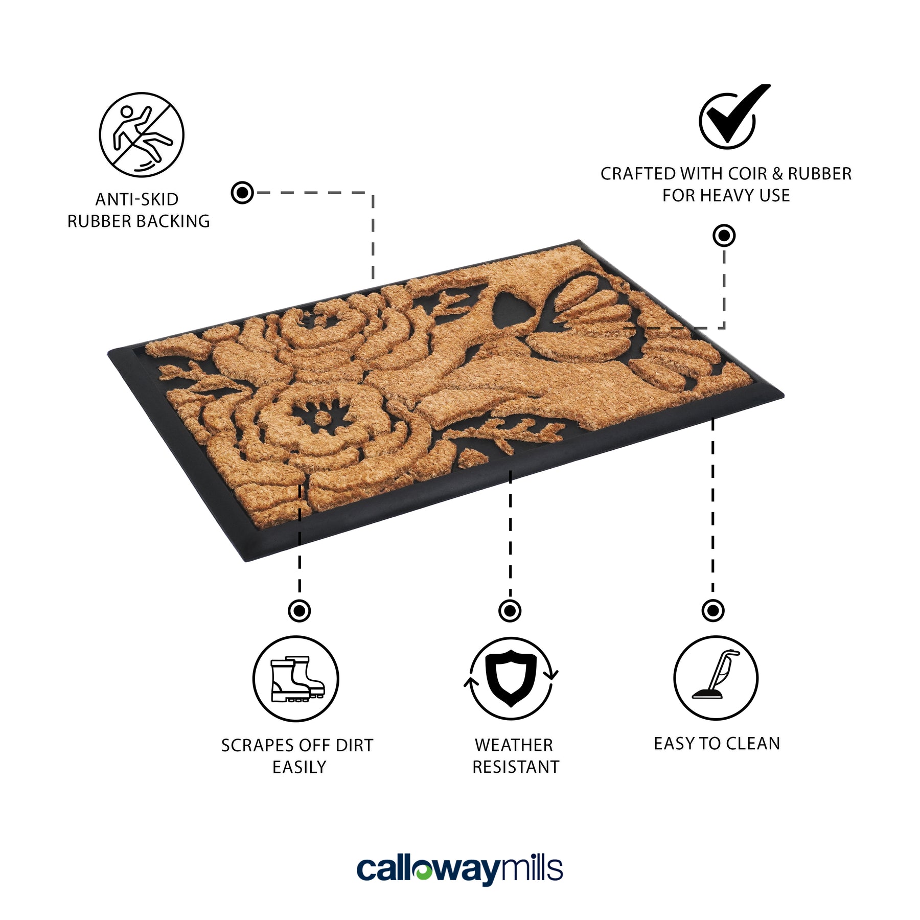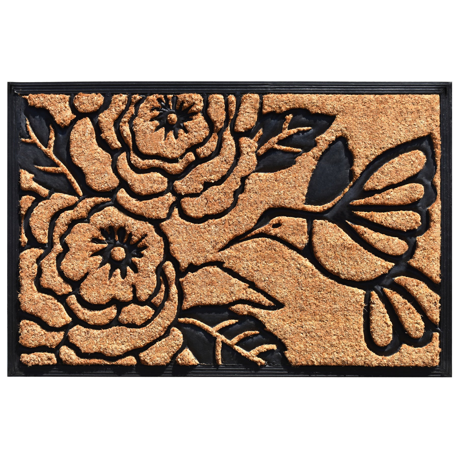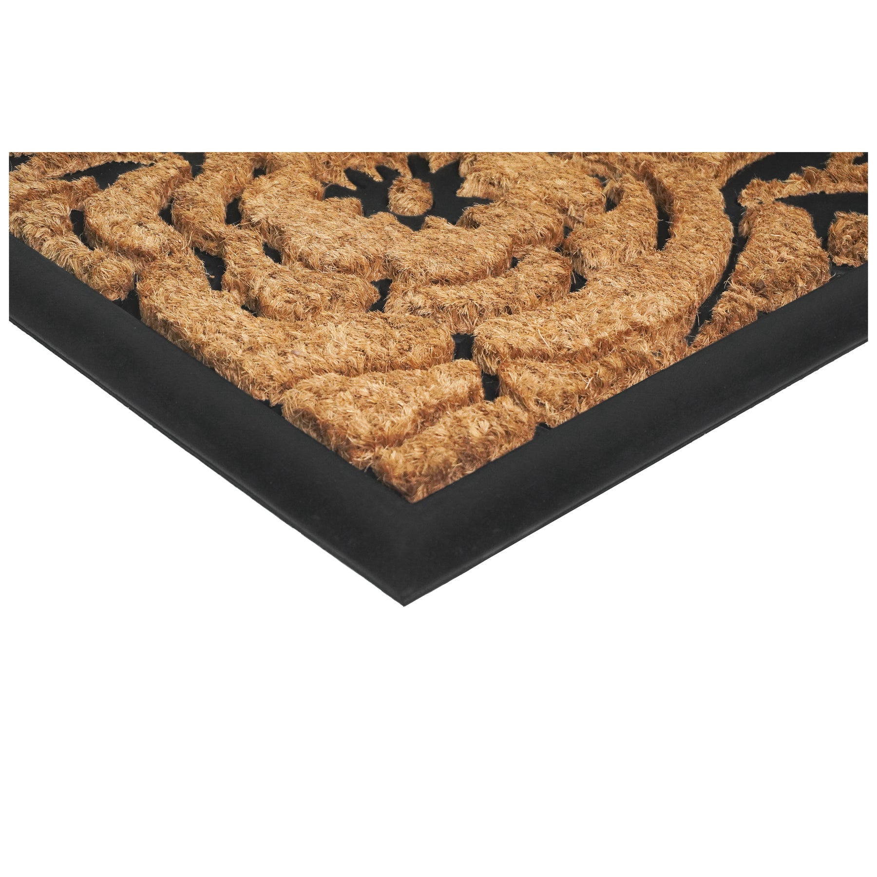 Over-sized to provide more coverage, this beautiful combination of coir and rubber make a stylish, yet durable reception for your guests. While the heavy-duty rubber adds weight and elegance, the coir acts as a natural scraper on shoes to keep debris from entering your home. Sweep or hose clean.