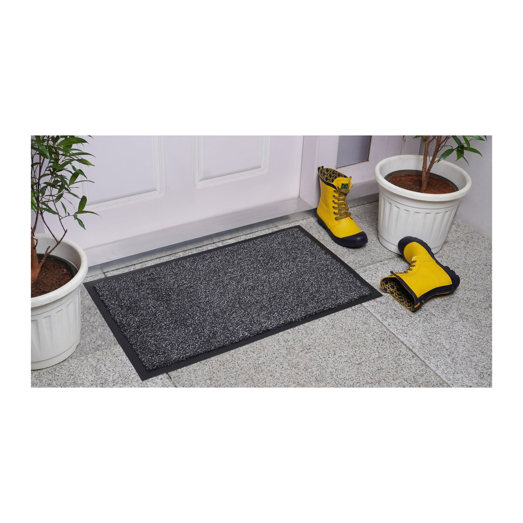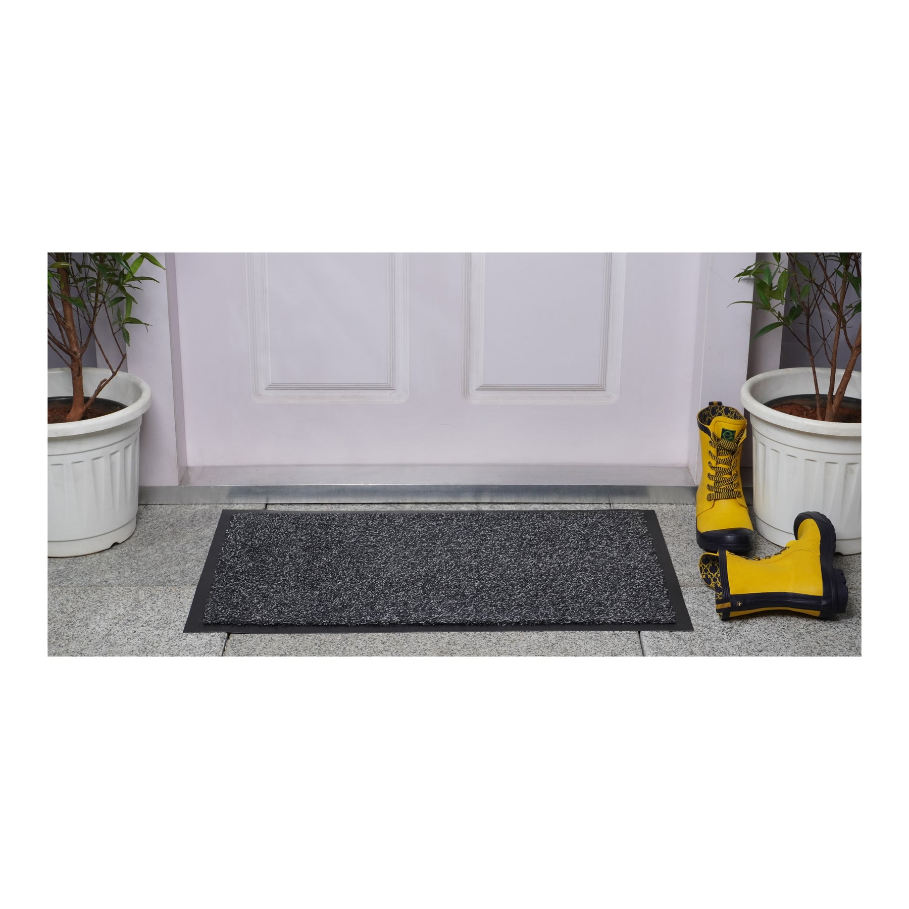 A continuous filament, luxurious cut pile olefin fiber, permanently fused to heavy-duty vinyl backing, makes this an excellent choice for heavy traffic areas.  Eighteen ounces per square yard of tough, heavy denier fibers allows this mat to trap more water and dry faster than other carpet fibers while stopping dirt at the door.  Perfect for entranceways into malls, churches, schools, industrial plants, hotels, hospitals, restaurants, offices etc.  Cleans easily by vacuuming or sweeping with a damp broom.
