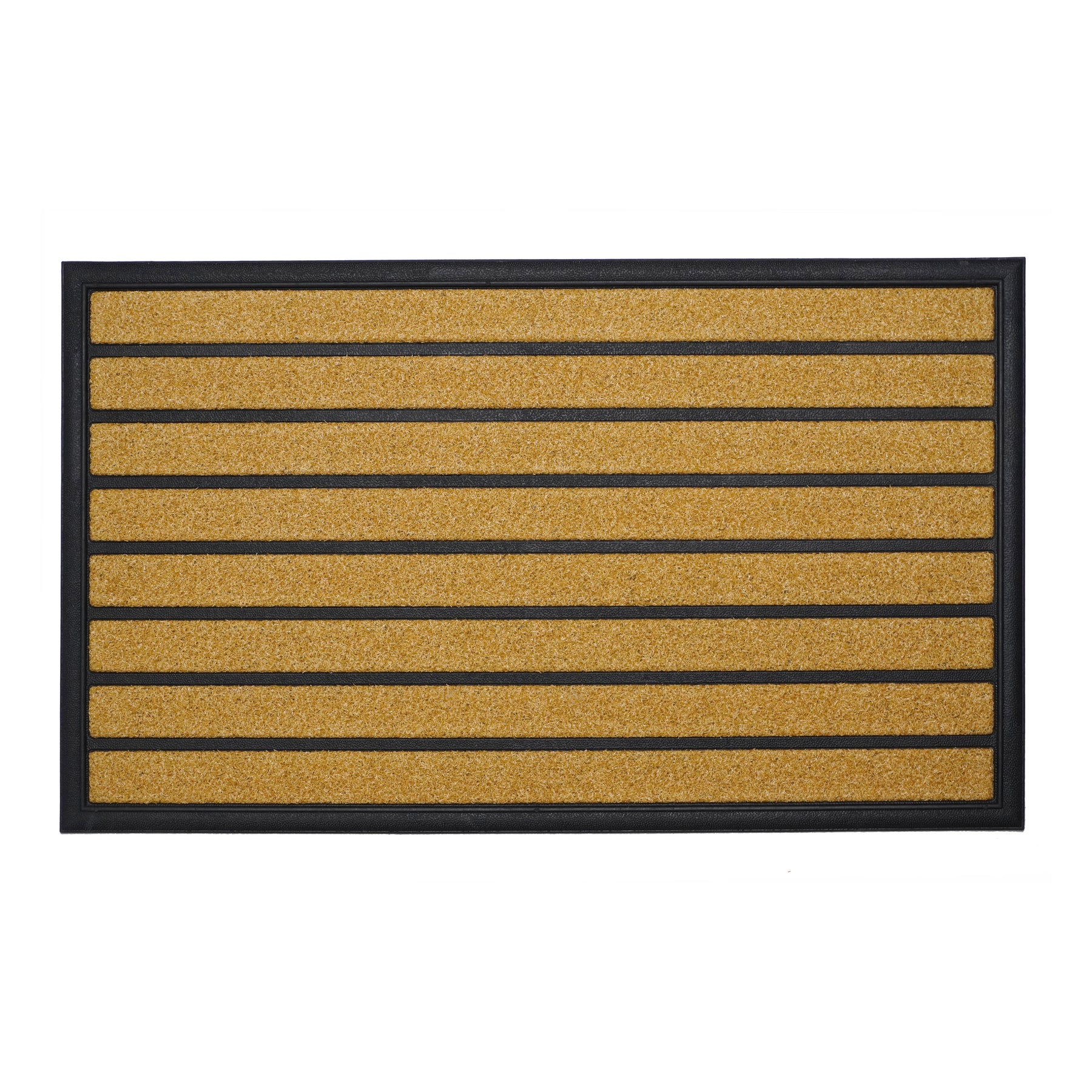 Made of faux coir and rubber. Ideal for both outdoor and indoor use. Coarse synthetic face, similar to natural coir, which is perfect for scraping as they remove and trap dirt, debris, and moisture from shoes. Faux coir doormats do not shed and are long-lasting. In addition, the vinyl backing adds extra stability to the mats by preventing any sliding or movement. To clean your mat vacuum, sweep, or gently hose clean.