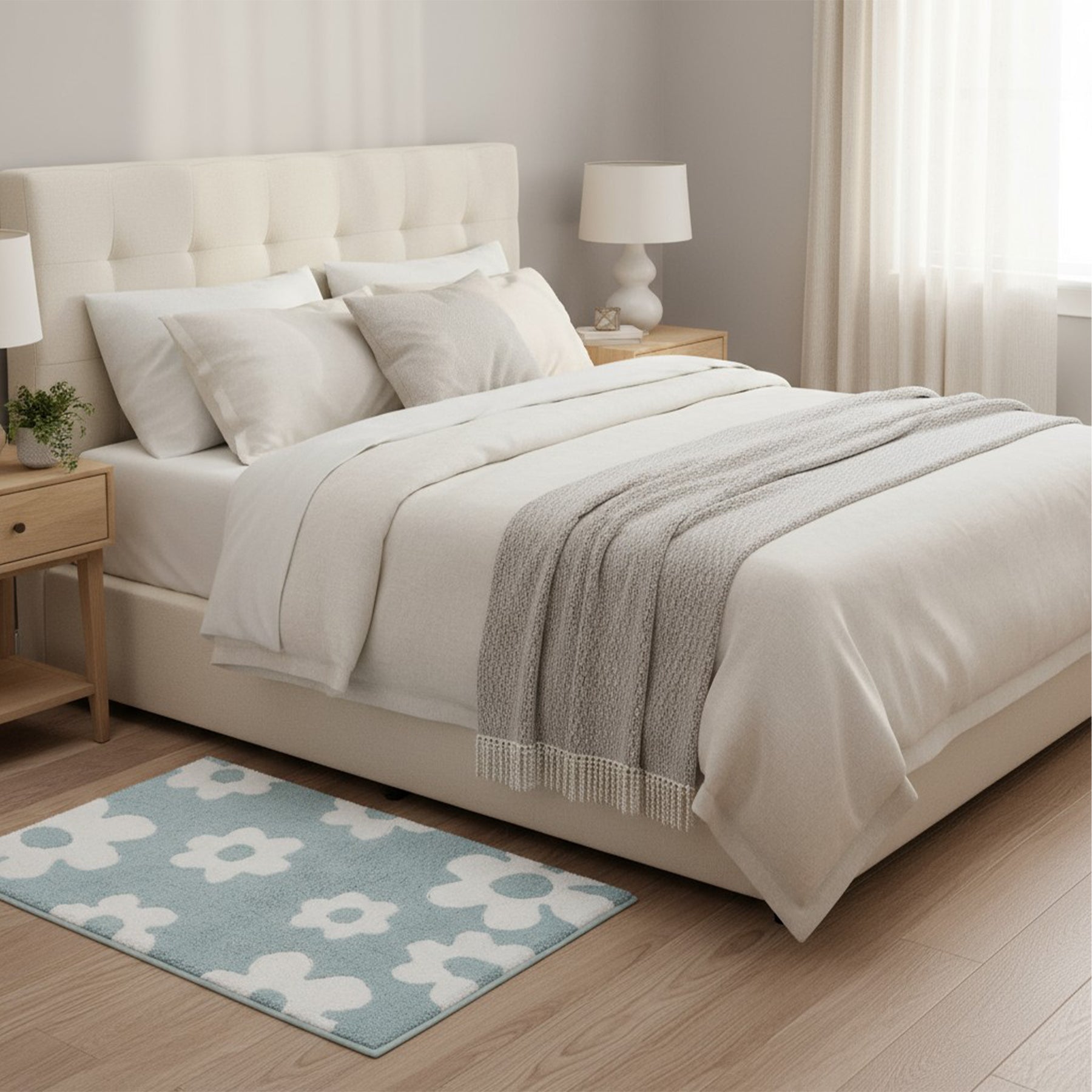 Create a serene and elegant ambiance with this beautiful rug adorned with white flowers. The minimalist design features delicate white blooms against a neutral background, adding a touch of tranquility and sophistication to any room. Perfect for enhancing the decor of a bedroom or living area, this rug brings a sense of calm and natural beauty, while its durable construction ensures long-lasting comfort and style.