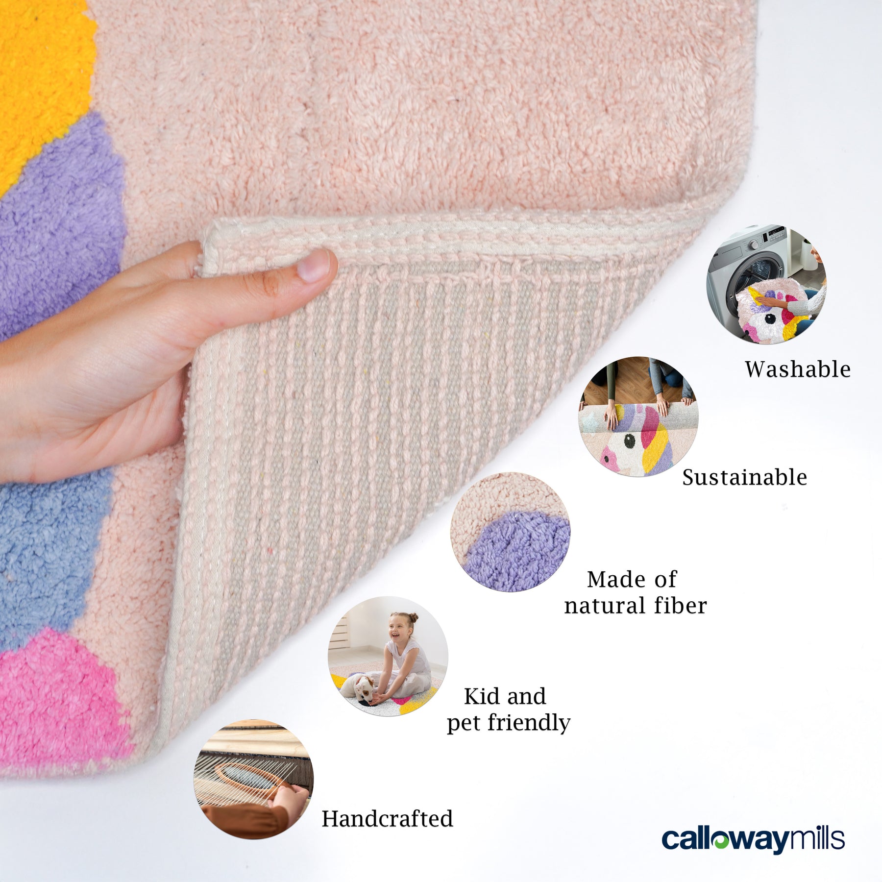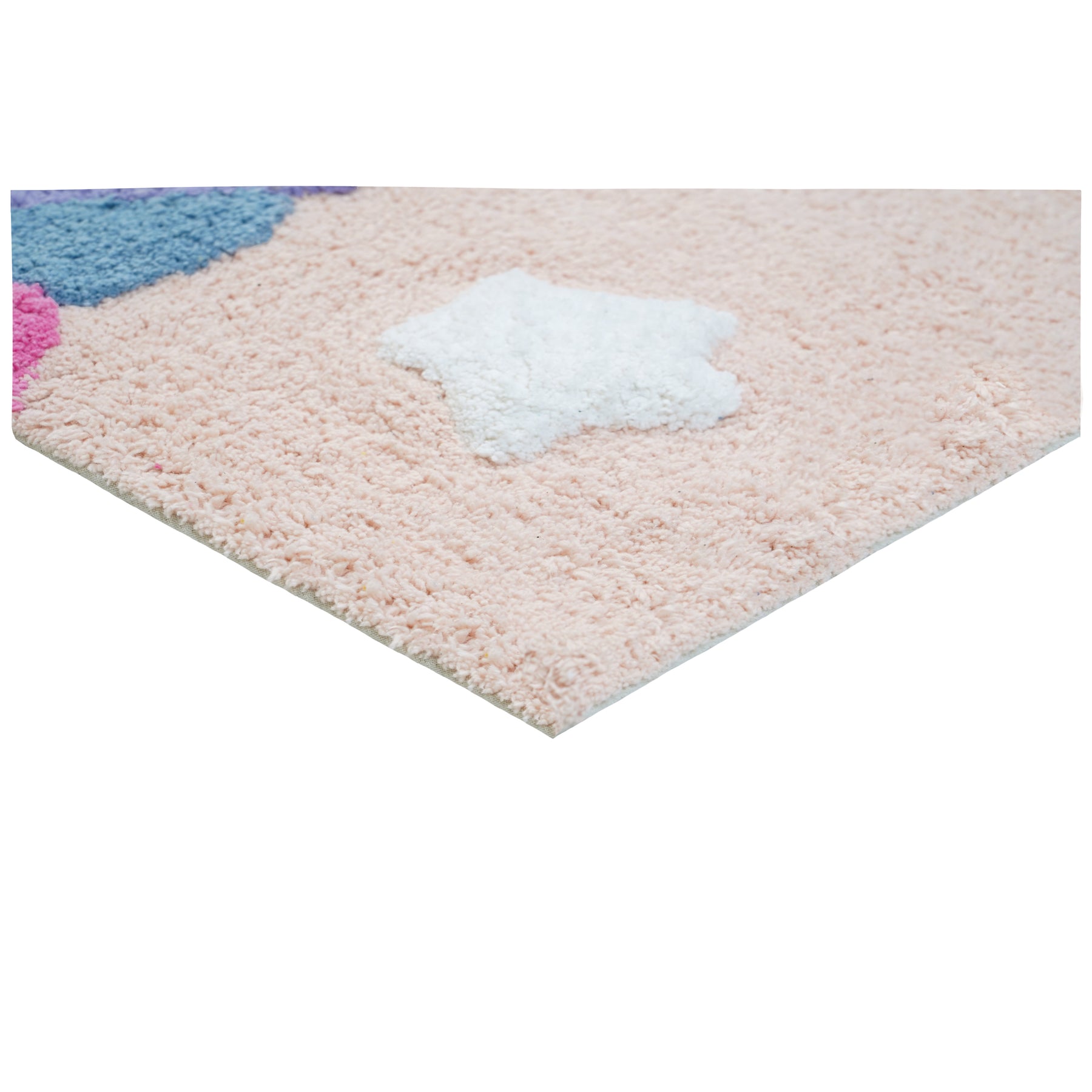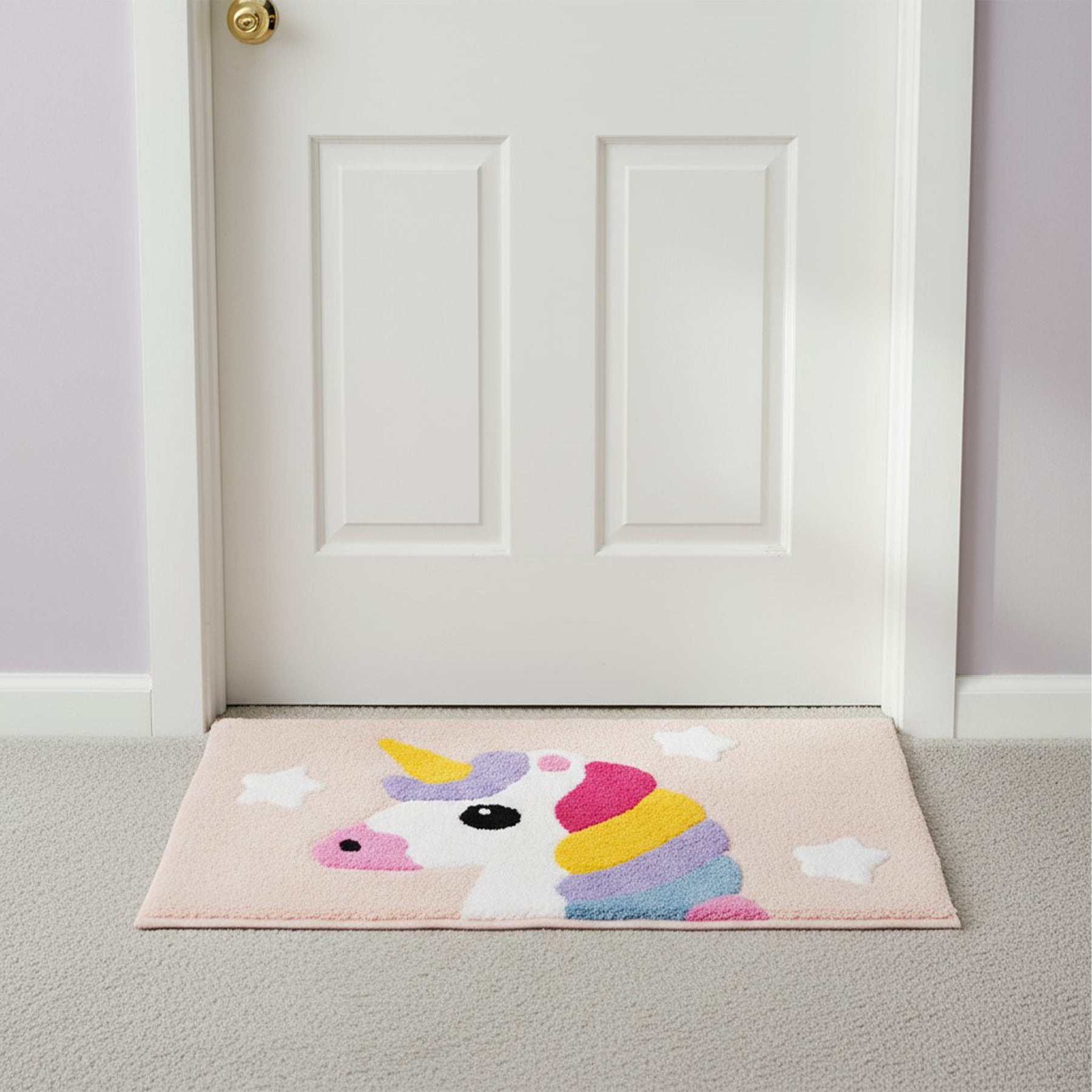 Add a playful touch to your space with this vibrant unicorn rug adorned with stars. This rug features a majestic unicorn with a flowing mane, surrounded by stars, set against a soft, neutral background. The vibrant colors and whimsical design are sure to spark your little one’s imagination, making their space even more delightful. Durable and easy to clean, this rug is perfect for adding a touch of wonder and creativity to any playroom or bedroom.