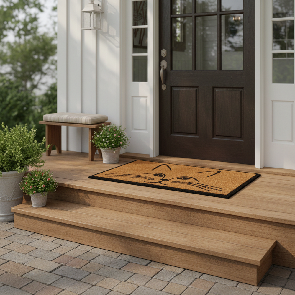 This delightful doormat features an adorable cat face illustration, making it a purr-fect way to welcome guests to your home. Crafted from durable materials, it effectively traps dirt and moisture to keep your floors clean. Whether you're a cat lover or simply appreciate their playful nature, this doormat adds a whimsical touch to your doorstep. Let this cute cat face greet your visitors and create a warm, inviting atmosphere as they enter your home.